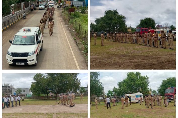 सदर रूट मार्च व मॉब डिस्पोजल सरावाकरिता जेजुरी पोलीस स्टेशनचे कडील एकूण 1 सपोनि, 3 पो.स.ई. अधिकारी, अंमलदार – 20 , सासवड होमगार्ड पथकाचे- 18 होमगार्ड जुना पालखी मैदान जेजुरी येथे उपस्थित होते.